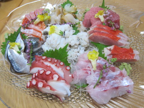 出ました、お刺身の盛り合わせ。豪華ですね。