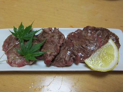 牛タン。一切れづつが大きく、まるでステーキの様。食べ応えがあります。