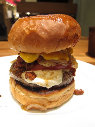 どうですか、美味しそうでしょう?でも思っていたよりちょっと小ぶりだったんですよね。ちょっと残念。食べる時には、具菜がこぼれるので、紙の袋に包んで食べます。でも食べ方が難しいですね。パテは焼き立てで熱いし、袋で包んでいるとは言っても、中にどんどんこぼれるし・・・。私はこのタイプのハンバーガーを食べるのが苦手なのを忘れていました。でも、味は良かったですよ。ちょっと急いでいたので、あわてて完食。もう少し落ち着いて、味わって食べれば良かった。