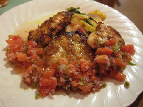 ランチメニューは、パスタや、ステーキ、などありますが、私は、ケイジャンチキンのサルサソースを頂きました。一緒にパンかライスが選べますが、私はライスをオーダー。