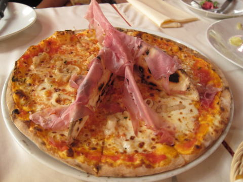 お次は、生ハムのピザ。大きいです。クリスピーで美味しかったです。