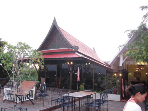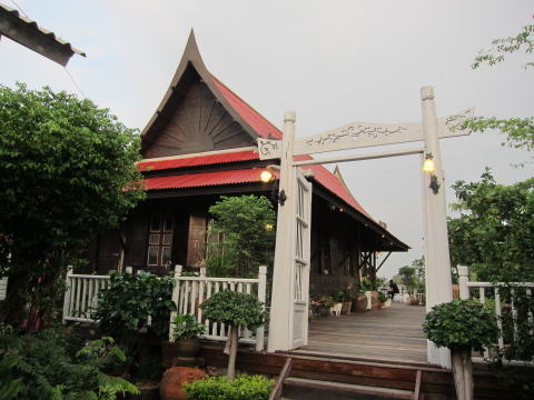 タイ出張2日目はタイ料理のお店へ。会社と同じ県にあるラーンバンマヌーンというお店。古民家を利用しているらしく、川岸にありオシャレな感じ。ここがお店の入口。