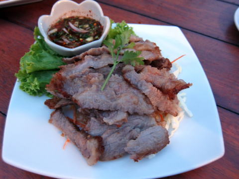 牛肉の料理。ステーキ?タイの牛肉は美味しくないと聞いていたが、そんなにまずくは無いです。