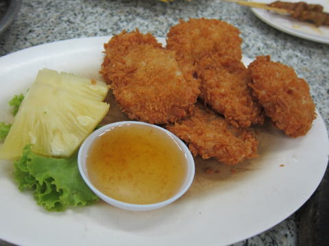 牡蠣の卵とじ。あっさりした味。甘辛いタレを付けて食べます。