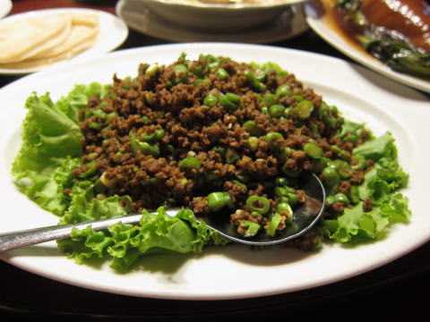 これも先ほどの北京ダックの肉を使った料理。レタスに包んで食べます。
