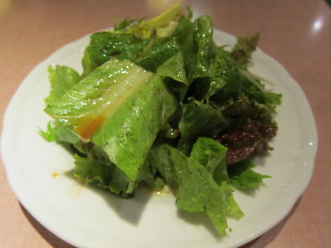 まずは、サラダが出てきました。レタスと水菜中心のサラダです。