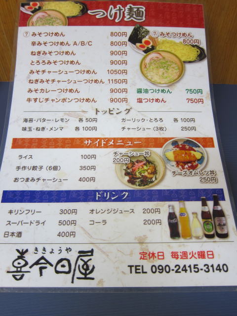 今日は、なんつっ亭の裏手にあるラーメン屋「喜今日屋」へ行きました。大通りに面していないのでちょっとわかりずらいですが、なんつっ亭の場所がわかれば、すぐです。