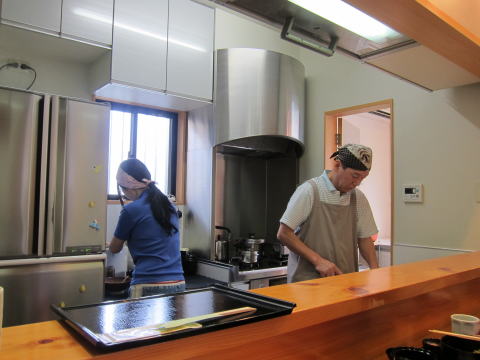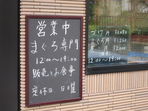 ここは、食事だけではなく、お店ではマグロのお刺身を売っています。その奥に食事をするスペースが作られています。大変こじんまりとしていて、カウンター5席、2人がけのテーブル1つだけです。