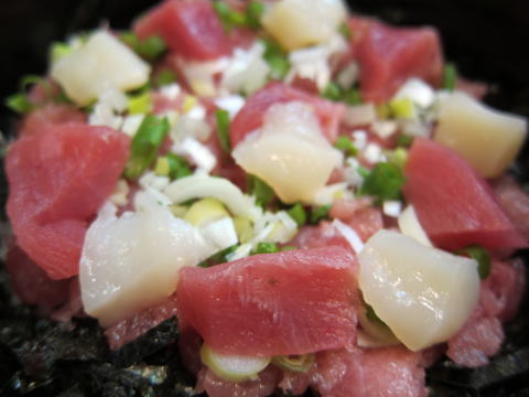 上に乗ったマグロブツや、ホタテも美味しい。あっという間に完食。