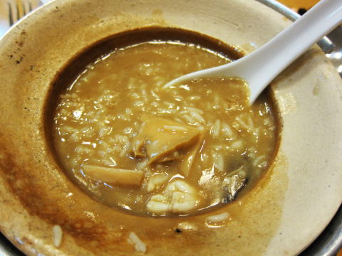 こちらも豪華なアワビご飯。ご飯というか、アワビ雑炊という感じ。アワビは柔らかいです。味は、フカヒレで使われていたスープと同じ。