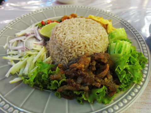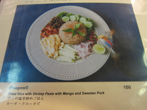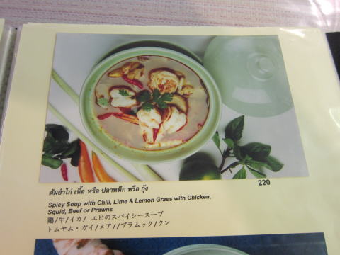 タイ料理は、一品一品が多いので、大人数で食べる方が経済的です。今日は私一人なので、トムヤムクンとチャーハンにしました。これはそのメニュー