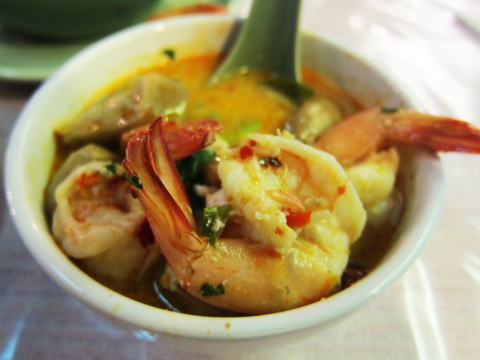 トムヤムクンを小さな器に小分けしたところ。大きな海老が沢山入っています。あまり強烈な辛さでは無く、美味しく頂けました。