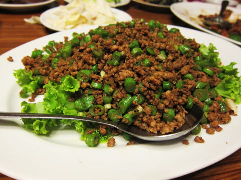 先ほどの北京ダックの肉ミンチ炒め。レタスに巻いて食べます。