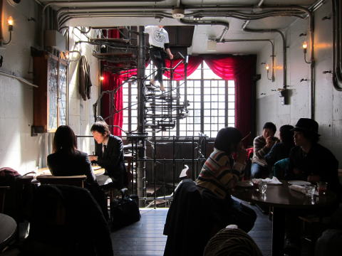 店内に入ると結構おしゃれな作り。2階のカウンターへどうぞと案内されます。螺旋階段を2階に上がると、結構人が入っています。