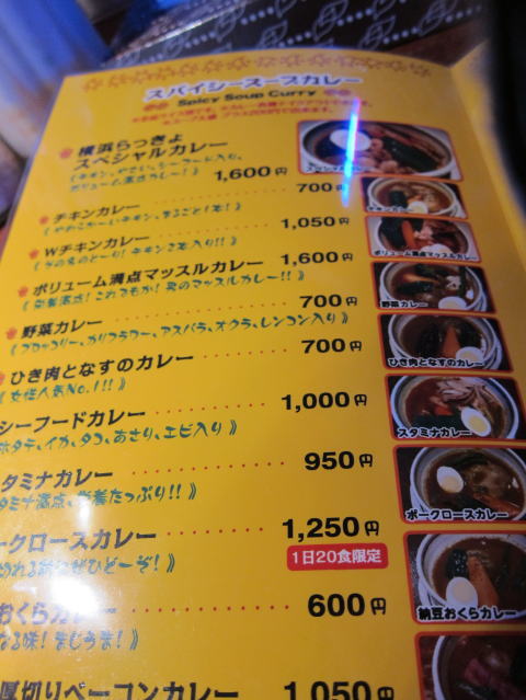 今日は関内ホールで練習だったので、その前に、馬車道の「らっきょ」で夕食。ここは、スープカレーのお店です。結構な人気店らしく、昼時は行列だそうです。今日は少し早めの夕食だったので、並ばずに入ることができました。それでも店内には結構なお客さん。とは言っても、お店はカウンターだけのこじんまりとしたお店なんですけど。