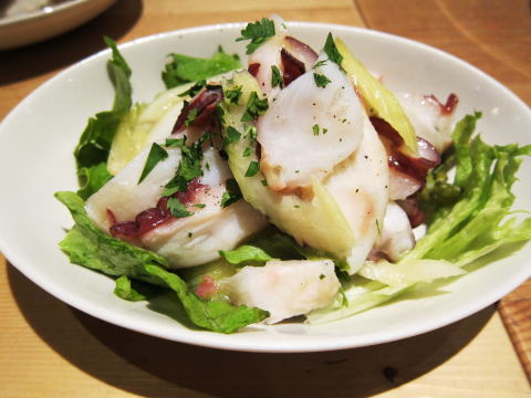 前菜のタコのマリネ。新鮮なタコに、セロリなどがミックスされ美味しいです。