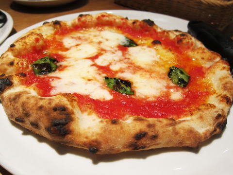 ピッツァ・マルゲリータ。モチモチ生地にトマトソースが利いています。