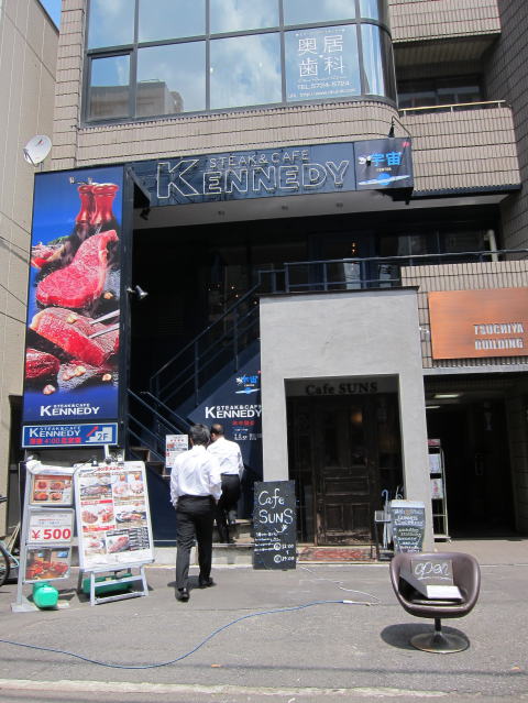 今日は、中目黒で仕事、なので中目黒でランチです。何だか肉が食べたい気分だったので中目黒で人気のステーキ店を検索し、「ケネディ宇宙センター」という変わった名前のお店に行ってみることに。中目黒駅から大橋方面へ少し行くと山手通り沿いにあります。外観はこんか感じです。