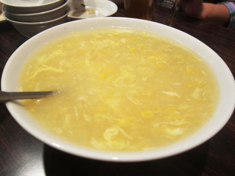 これはコーンスープ。なんと最初に出てきたスープは味がしない。お店の人に伝えたら味付けを忘れたとのこと!すぐに作り直してくれました。今度は美味しかったです。