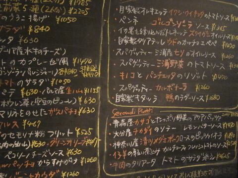 メニューはその日の食材を使った料理が黒板に書かれているだけで印刷したものはありません。こんな感じです。