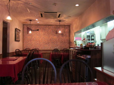 久しぶりのロシア料理。こちらのお店は、全て手作りだそうです。店内に入ると右手にキッチンがあり、その前にテーブル席が並びます。こんな感じです。