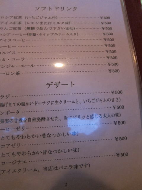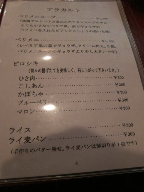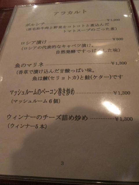 店内にはムソルグスキーの展覧会の絵がBGMとして流れていました。良い感じ。メニューはこんな感じです。