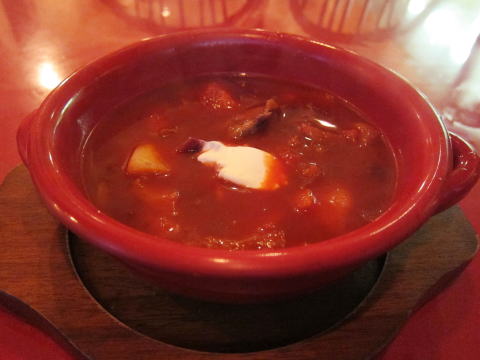 そして、ボルシチの登場。このボルシチはお店で3日間煮込んで作られたものだそうです。