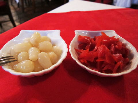 すぐに、オムライスの付け合せのらっきょうと福神漬けが出て来ました。