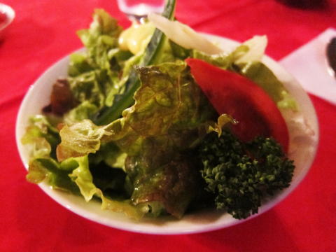 練習前に気軽に夕食と思っていたので、オムライスをオーダーしようと思ったら、結構なお値段。でもやっと入ったお店なのでオーダーしてみると、夜はオムライス単品は受け付けないとの事。サラダか何かを一緒に頼む必要があるそうです。なので、コンビネーションサラダをオーダーすると、このサラダは量が多いので、少しにしましょうと言ってくれました。