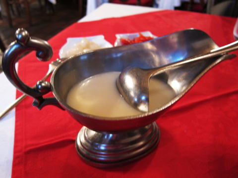 そしてコンビネーションサラダ登場。ドレッシングはソースボートに入って出て来ました。今回はフレンチドレッシングにしました。