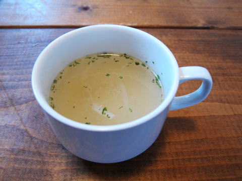 オーダーすると、まずスープが出て来ました。チキンスープです。