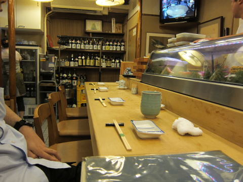 さて、店内へ。L字のカウンターがあります。こじんまりとしたお店。まあお寿司屋さんはこんな感じですよね。店内はこんな感じです。