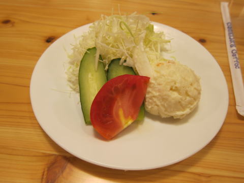 今日は、ミニサラダと、カツサンド、アイスコーヒーをオーダーしました。まず、サラダとアイスコーヒーが出て来ました。