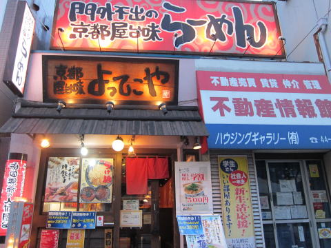 今日は湘南台へ行く用事があり、湘南台の駅前で夕食。京都風?ラーメンのよってこやです。外観はこんな感じ。