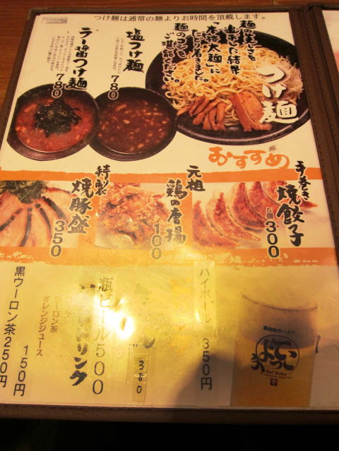 メニューは、つけ麺、ラーメンとまあ、定番メニューがいろいろあります。