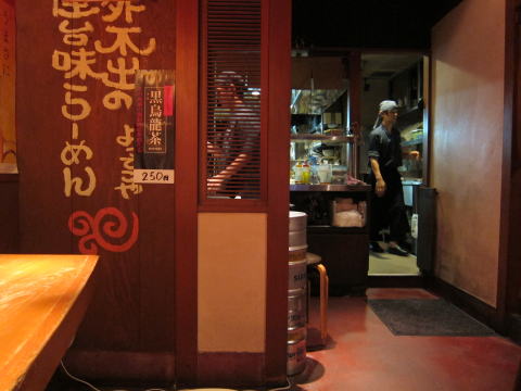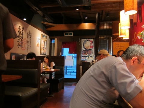 京都屋台味だそうです。店内に入ると、テーブル席とカウンター。こんな感じ。