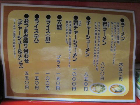 ラーメンの種類は少ないですね。私はお店の名前の付いた「昇ラーメン」をオーダー。程なくしてラーメン登場。