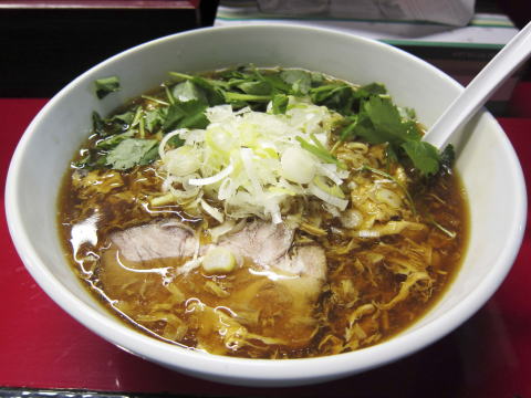 麺は中太ちぢれ麺。これは悪くありません。今回の昇ラーメンは、普通のラーメンに玉子の餡がかかっているということで、確かに玉子はかかっていますが、それほど主張は強くないです。あとは、、チャーシュー、ネギ、そして三つ葉。確かに玉子に三つ葉は相性が良いと思います。味の濃いラーメンでしたが、スープまで完食。でも、あまりリピートは無いかな。