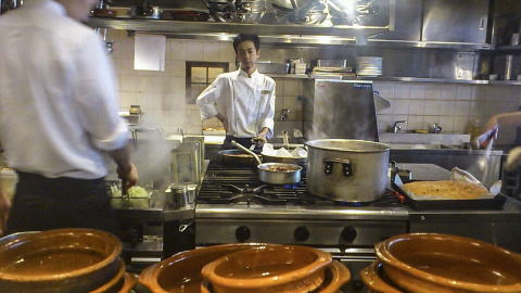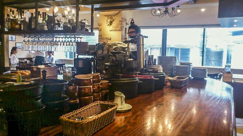 店内に入ると、カウンター席と奥にテーブル席。カウンターからは、オープンキッチンが良く見えます。