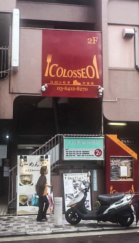 今日は中目黒で仕事なので、ナカメランチです。駅のそばにある「コロッセオ中目黒」というイタリアンのお店。外観はこんな感じ。