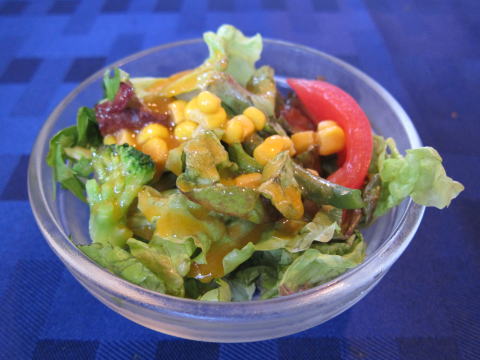 小ぶりのサラダですが、美味しそうです。レタスの他に、ブロッコリーなども入っていて結構いけます。