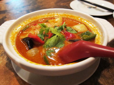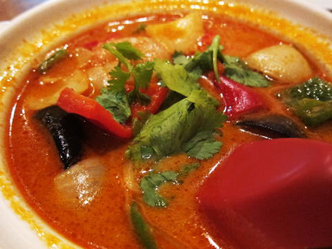 カレーは、ココナッツベースのカレーで、野菜がタップリ。エビは剥き身のエビと殻つきのエビが入っていました。辛くは無いですが、コクのあるカレーです。美味しい。