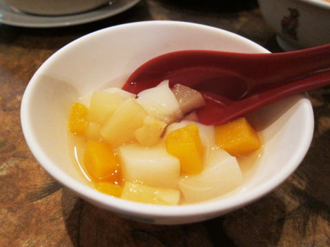 ご飯を掬って、カレーに付けて食べました。スープカレーの感じで。いやー、これ安くは無いのですが、美味しかったです。カレーを食べ終わると、今度は杏仁豆腐が出て来ました。カレーは中華じゃ無いんですけどね。アジア各国の料理がごちゃまぜのお店なのかも知れません。