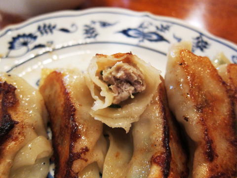 そして、餃子、こちらは、店の看板にも書いてあるので期待していたのですが、いまいちでした。まず、皮が焼けすぎで、硬いです。それに肉汁が全く感じられません。