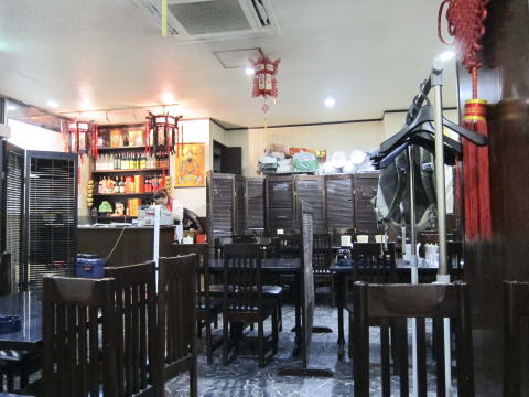 店の外には、出前用のバイクが何台か止まっており、出前にも力を入れているようです。さて、店内に入ると、結構広いお店です。店内はこんな感じ。これでも店内の半分くらいしか写っていません。