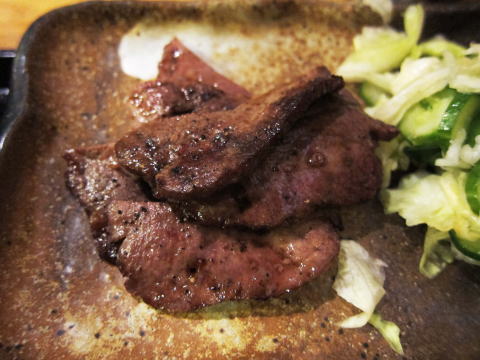 まず牛タンを一口。しっかりした歯ごたえはありますが、口に入れてしまえば普通に食べられる硬さです。焼加減はミディアムという感じでしょうか。決してウェルダンでは無いです。あごがくたびれる事もなく完食できます。