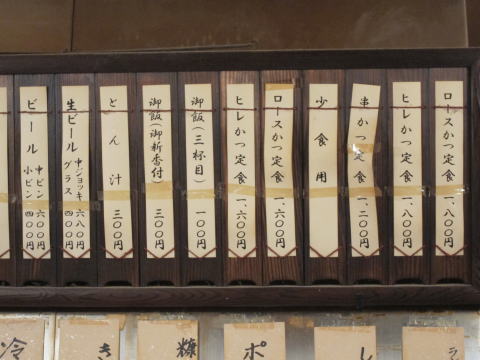 壁のメニューを見ると、決して安くは無い値段が書かれていますね。でもせっかく入ったので、ヒレかつ定食の1800円の方をオーダー。大きさが違うみたい。