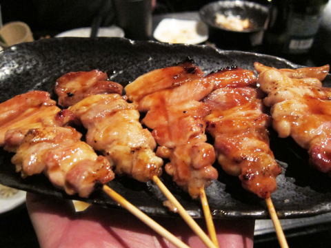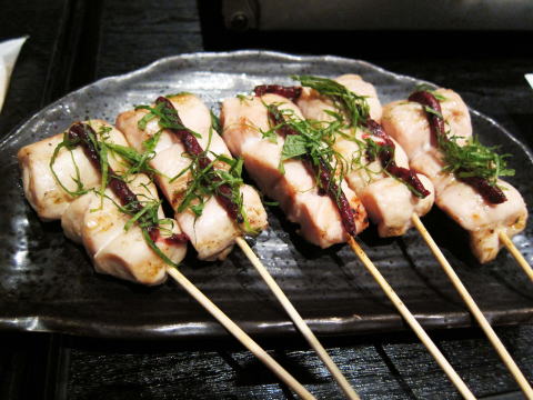 つづいて、ささ身の焼き鳥ですが、上に梅がかかっています。なかなかさっぱりとしていて美味しいです。