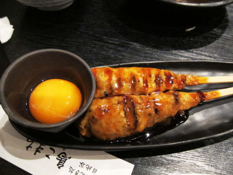 そして、この店ご自慢のつくねの焼き物。玉子を付けて頂きます。このつくね凄く柔らかいのは良いのですが、焼が結構レアでした。これで正解なのか?
