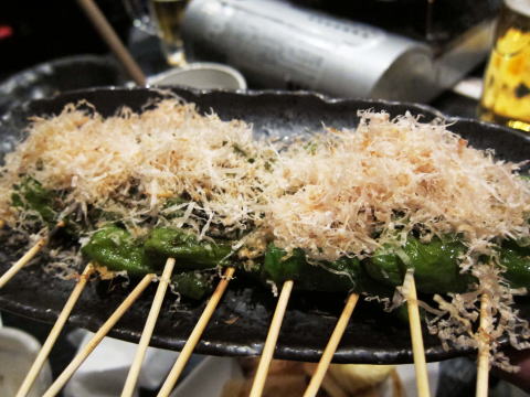 続いては、しし唐。上にたっぷりと鰹節が乗っています。あまり辛く無いしし唐でした。